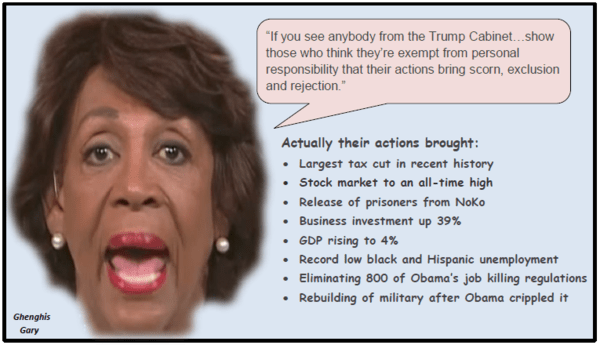 In spite of dingbat idiots like Mad Maxine Waters. And EIGHTY years of age – 80!